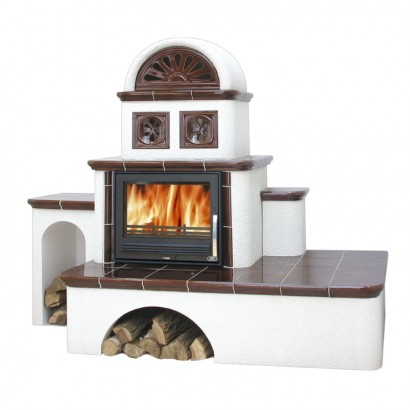 Самая большая кафельная печь в модельном ряду чешского завода «АВХ». Эта модель, безусловно, станет центральным предметом интерьера не только того помещения, где будет установлена, но, пожалуй, и всего Вашего дома. Сочетание изразцовых элементов и белой металлокерамической поверхности делает дизайн этого камина уникальным. Изготавливается в «левом» и «правом» исполнении. Камин комплектуется топкой с номинальной мощностью 10кВт. Цвет облицовки может быть коричневым или зеленым. Наличие