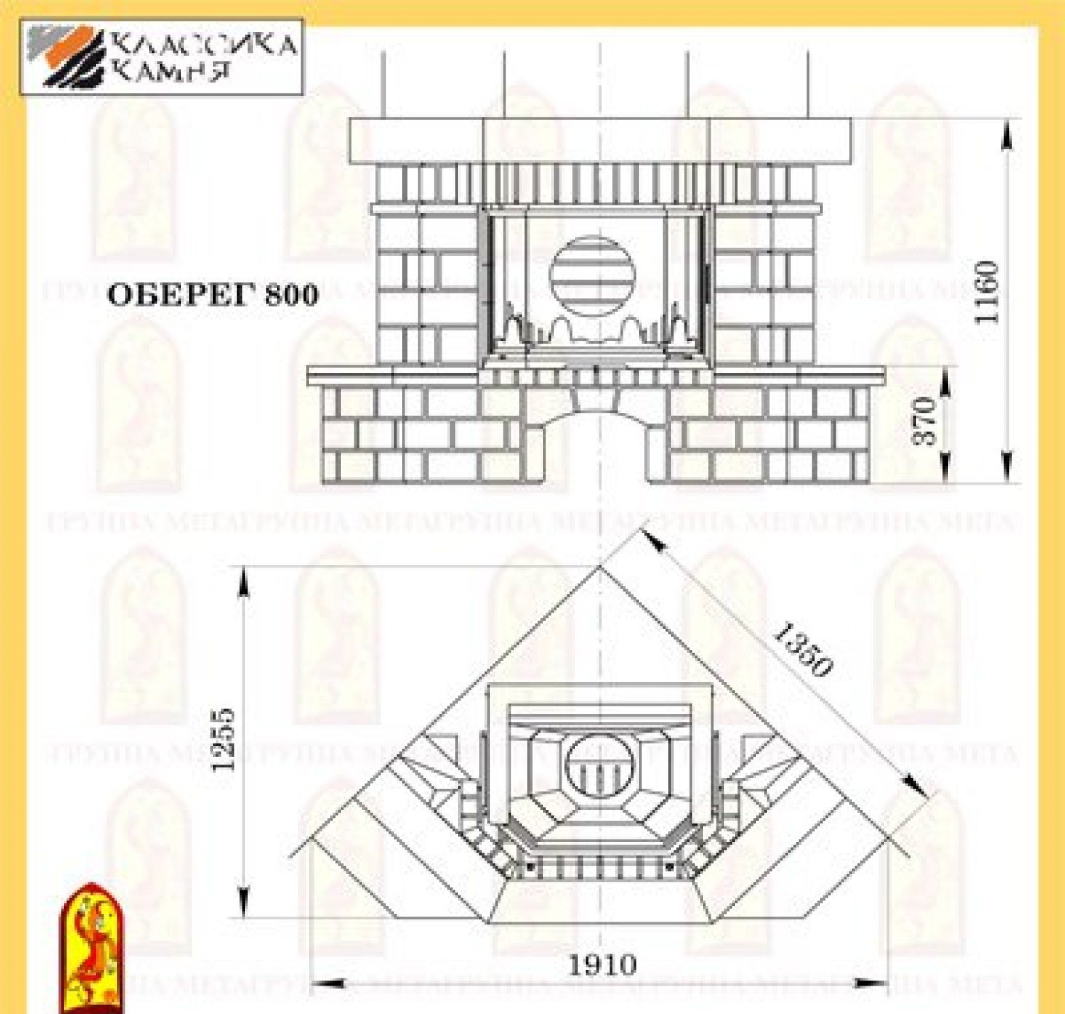 Каминная облицовка Мета ОБЕРЕГ 850 подходит для топки Мета Призма 850П.