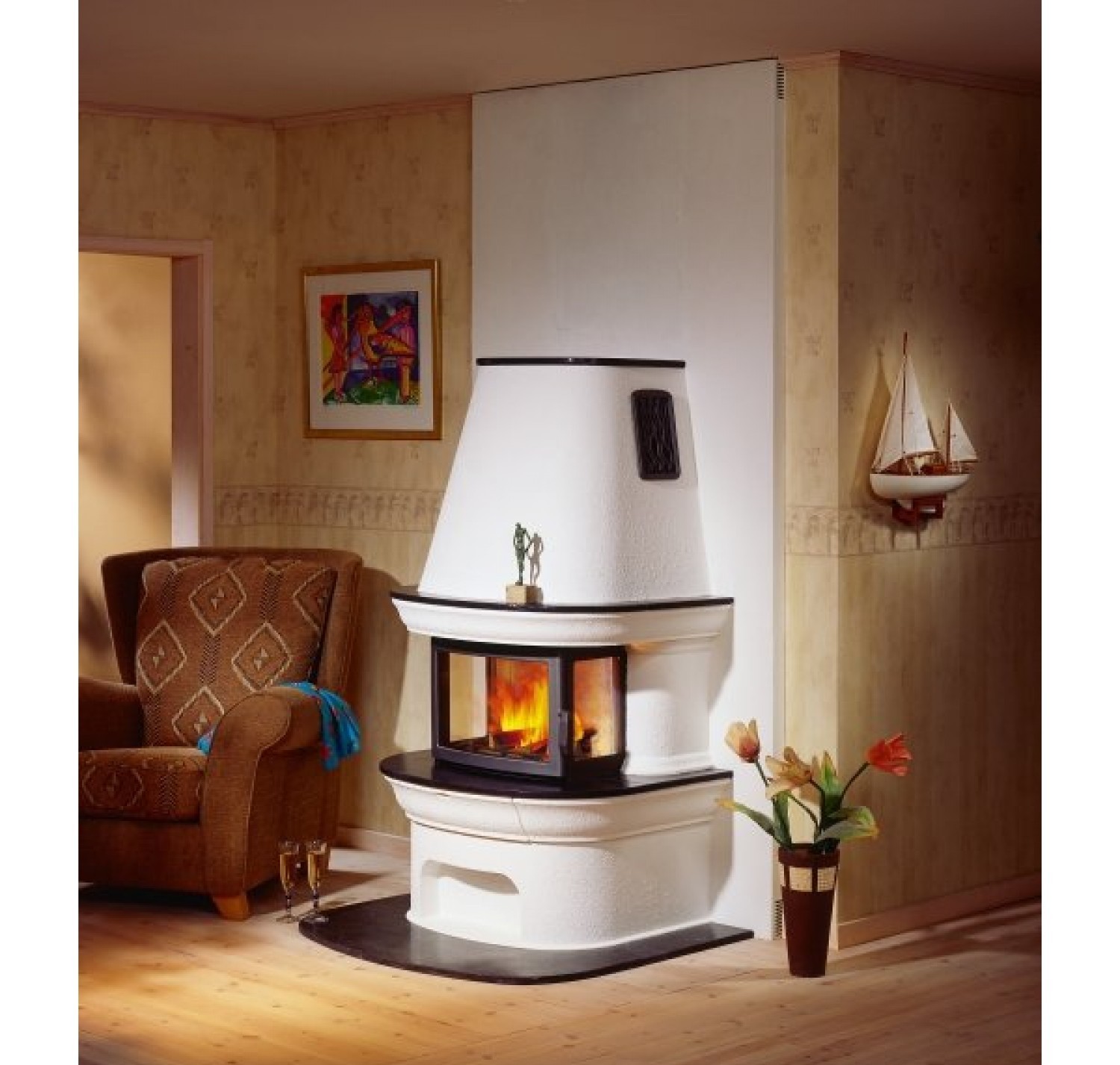 Печь-камин Contura 460 с серым корпусом топки с поворотной колосниковой решеткой, теплонакопительным блоком и выдвижным зольником. Отделка из бетона по индивидуальную покраску, мраморная полка и фриз. Имеется чугунная решетка для выхода горячего воздуха. Элегантность камина подчеркивается мягкими линиями дверцы топки и изящной аркой мраморной каминной полки. Стеклянные боковые стенки топки позволяют видеть пылающий огонь из любой точки комнаты, в то время, как тепло распространяется по всему помещению – согревая тело и душу.
