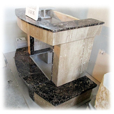 Выполнена из мрамора Trani, столешница – из полированного мрамора Noce delle Alpi. Балка из соснового массива под орех. Все модели реверсивны.