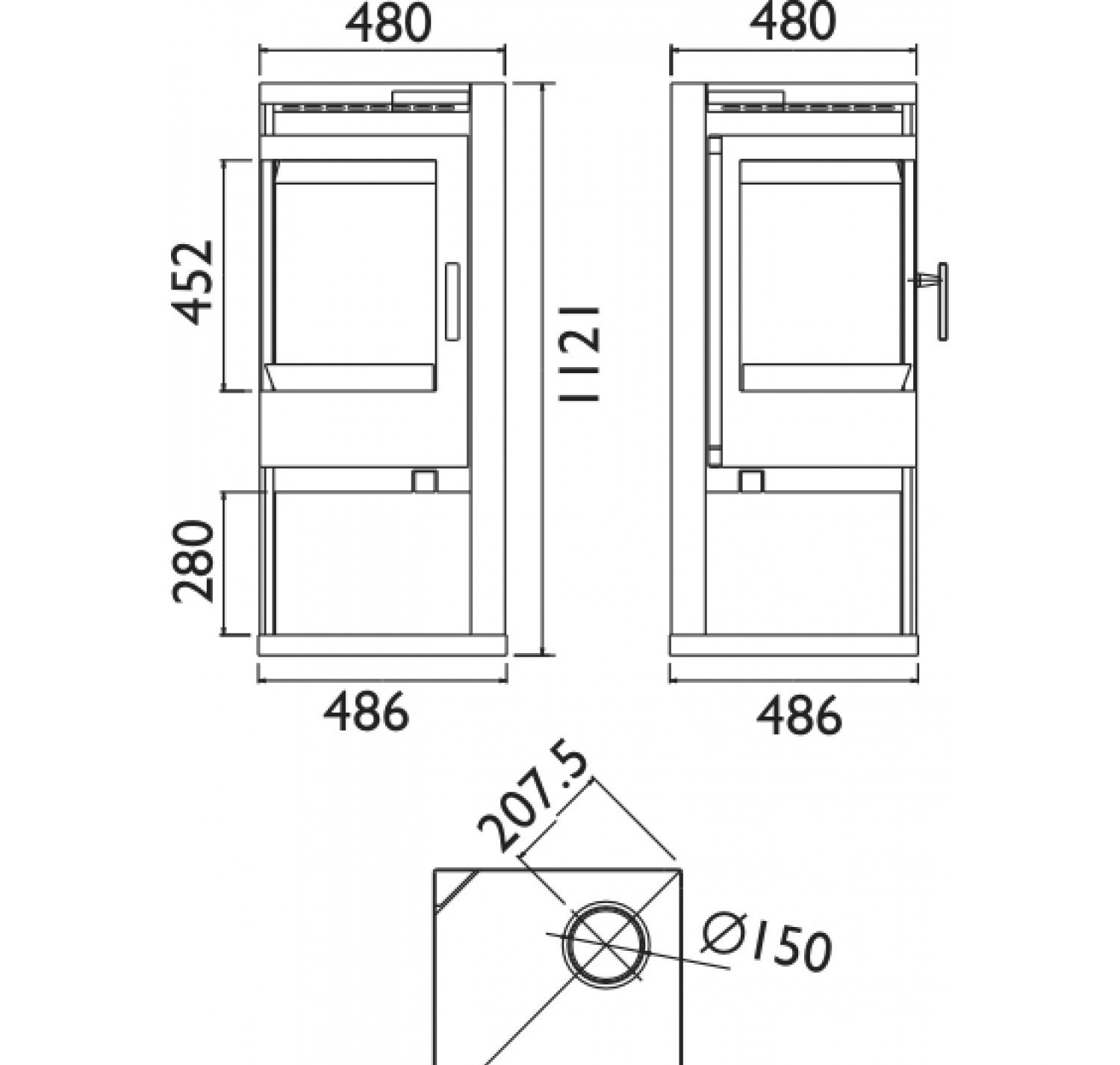 • Диаметр дымохода, (мм)