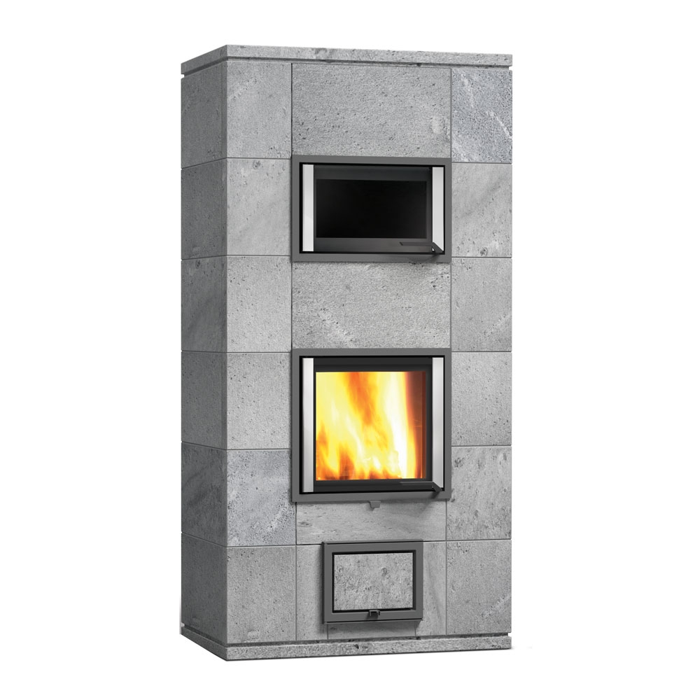 Пристенный печь-камин с задним нижним подключением 2 теплового класса, для больших помещений.