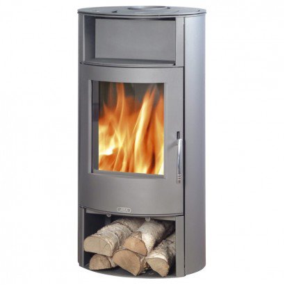 Топка печи-камина изготовлена из чугуна имеет стеклокерамическое стекло, выдерживающее нагрев в 700 градусов. В верхней части печи расположена специальная ниша для разогрева пищи. Внизу сделано углубление для хранения дров. Печь камин снабжена теплообменником для подключения внешнего контура отопления. Используется для отопления комнат, смежных с комнатой, в которой расположен камин. Это возможно благодаря циркуляции жидкости в теплообменных системах (радиаторы, теплоаккумулятор, трубы передачи теплообменной жидкости). Подключение дымохода: верхнее/заднее.