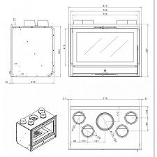 Также в этой печи предусмотрены система двойного дожига, система чистое стекло и функция медленного горения. Под топкой внизу расположена ниша для хранения дров, а над топкой — ниша для разогрева пищи.