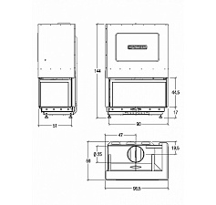 Каминная топка с очагом, облицованным специальным огнеупорным камнем. Топка оснащена регулятором тяги, который автоматически открывается в момент поднятия дверцы. Съемные и поворачивающиеся задвижки, через которые поступает воздух. Выдвижной зольник. Съемные ножки.