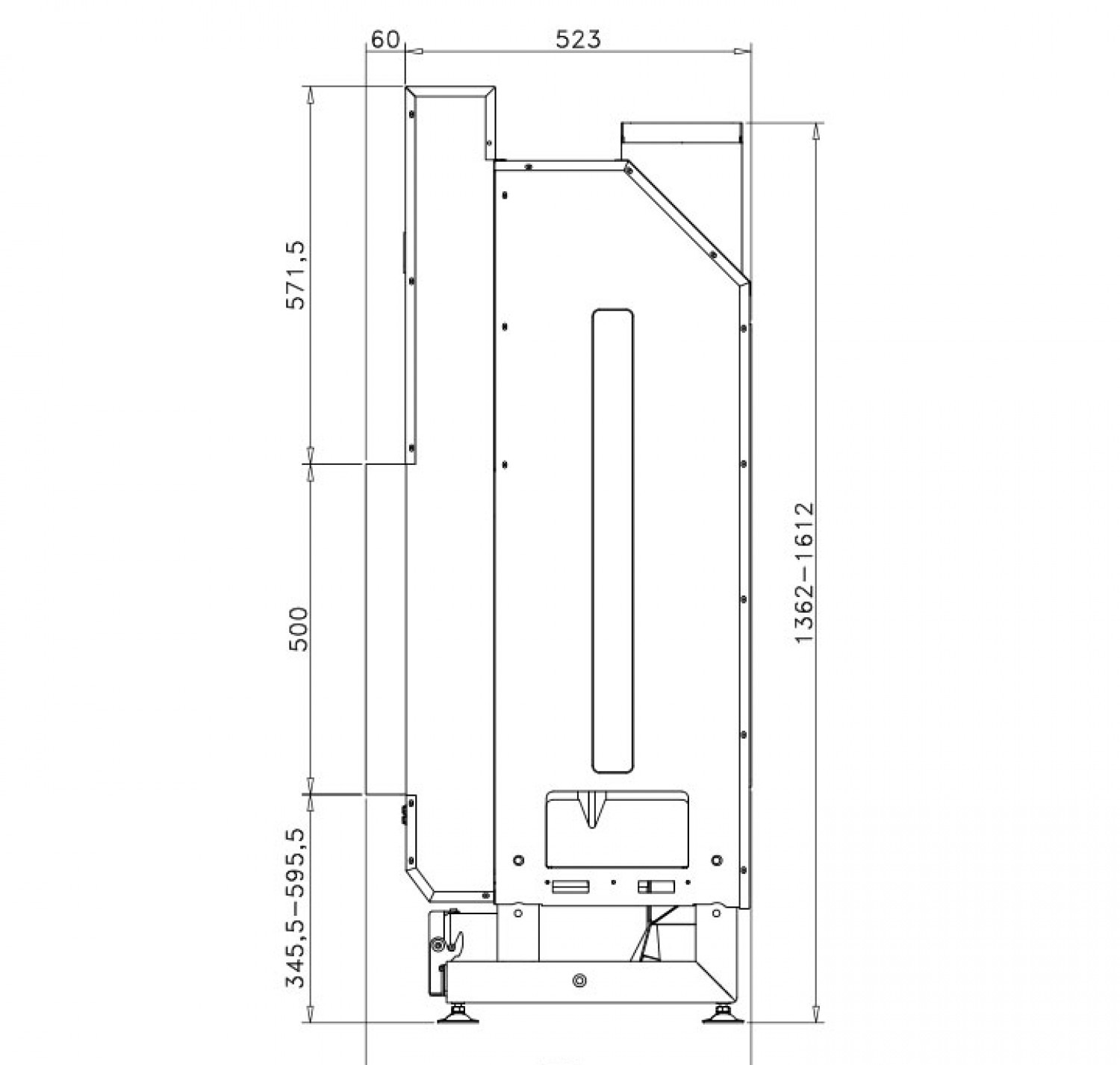 Односторонняя стальная топка с плоским стеклом. Дверца с подьемом вверх.