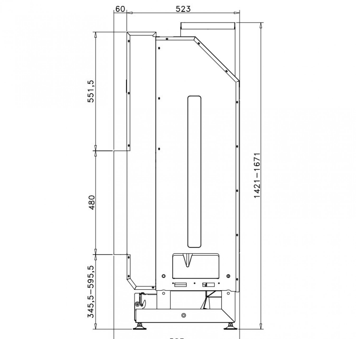Односторонняя стальная топка с плоским стеклом. Дверца с подьемом вверх.