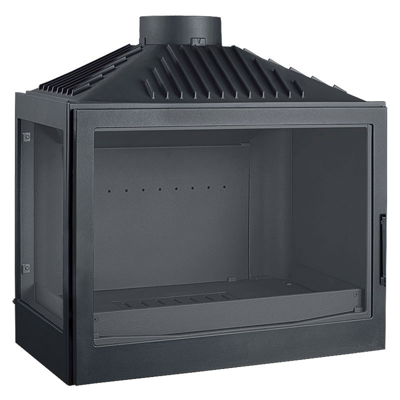Каминная топка с дымосборником. Стекло слева. Цвет - серый.