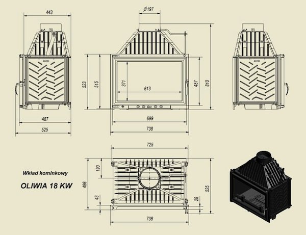 Топка OLIVIA относится к отопительным приборам высокой мощности (18 кВт) и способна отапливать до 180 кв. метров жилого пространства. Корпус топки выполнен из термостойкого чугуна класса 200, толщиной в 8 мм.