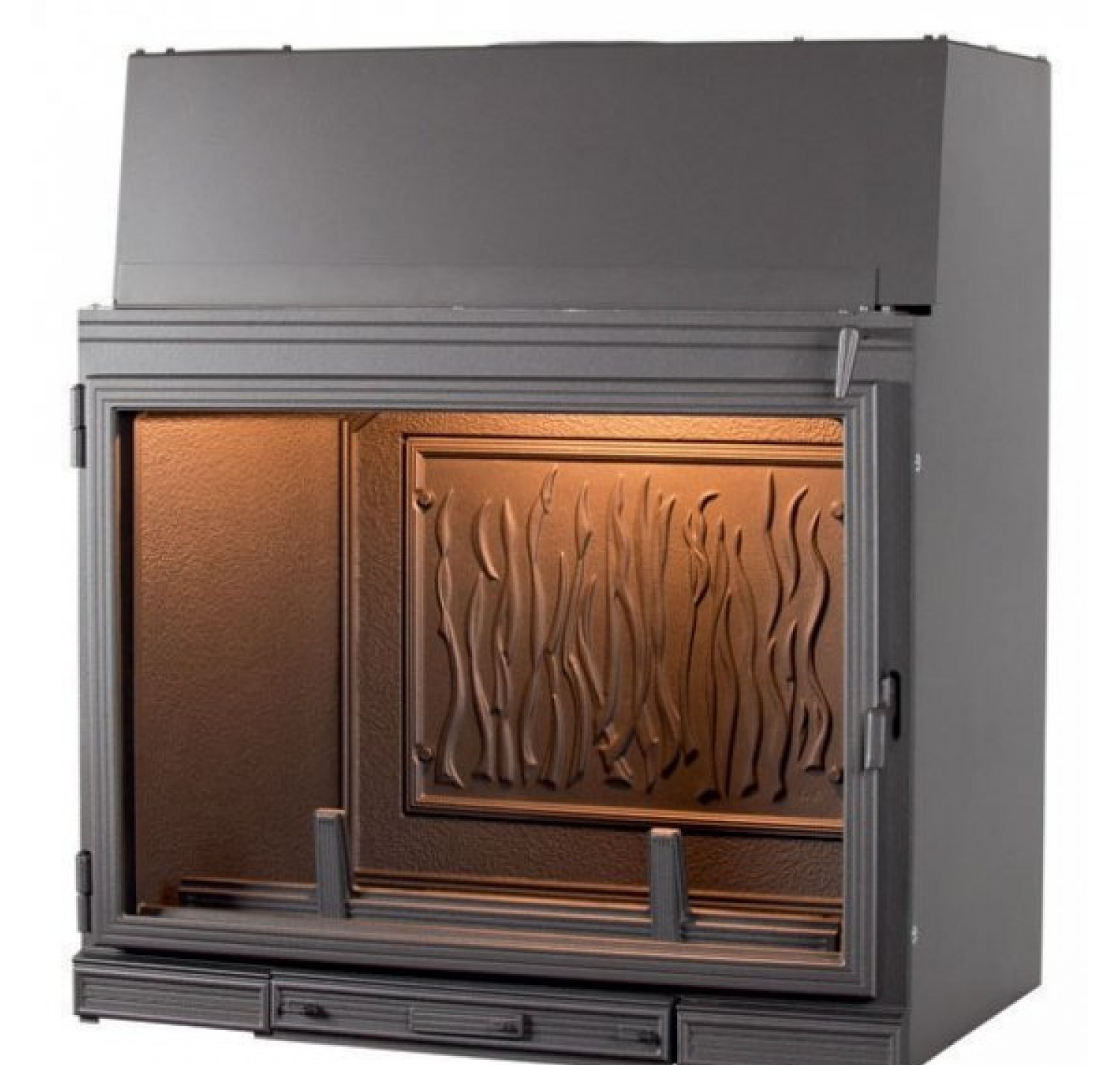 - Сама топка без подъема дверки вверх