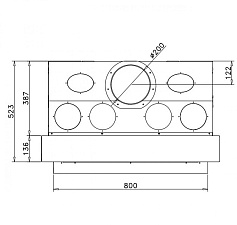 Каминная печь из чугуна. Одной закладки дров хватает на несколько часов непрерывного горения. Огнеупорное стекло с трех сторон открывает вид на огонь.