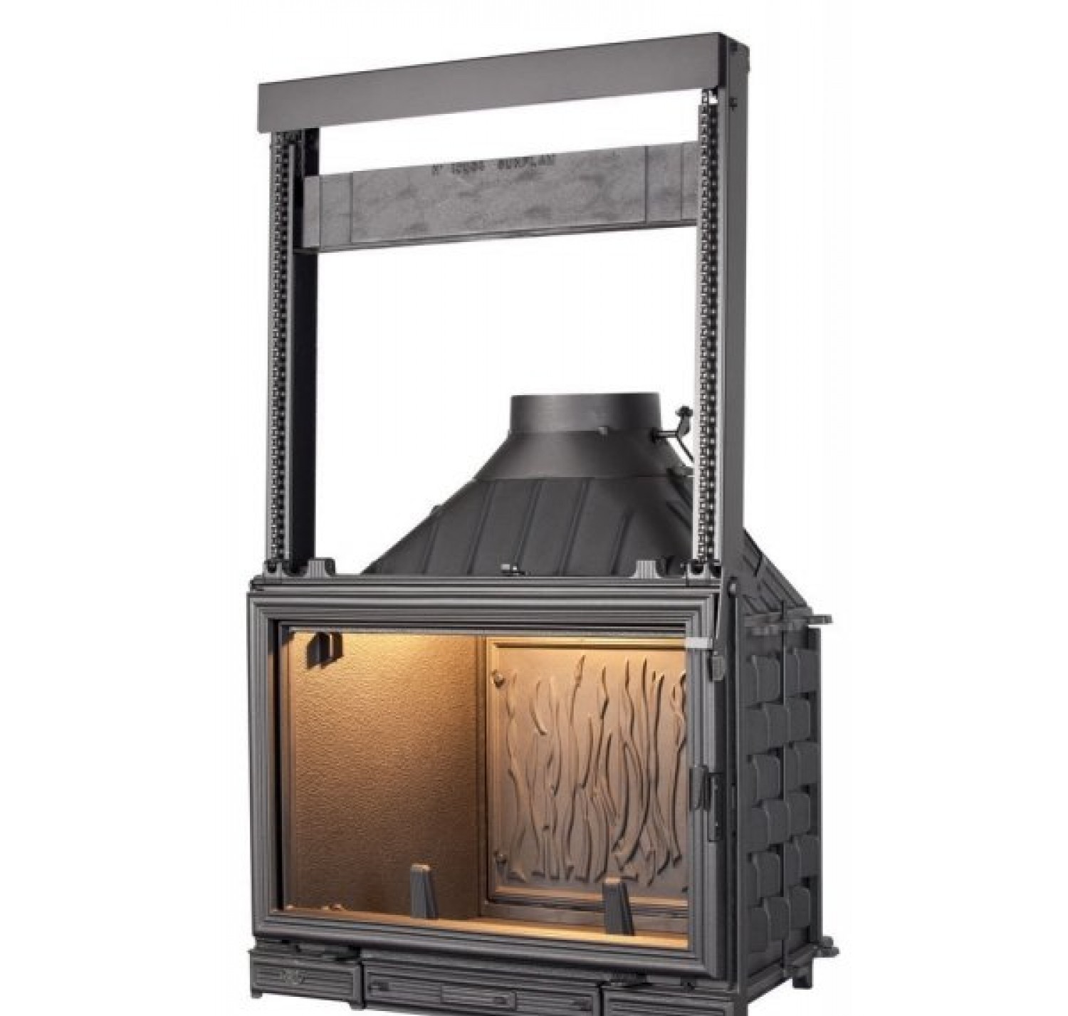 Топка Sunflam70 полностью чугунная – благодаря толстым стенкам из чугуна легко удержать на долгий период времени жар из очага. Теплонакопительные свойства чугунной топки настолько же хороши как и теплоотдающие, поэтому топка из чугуна сможет равномерно распространять тепло по территории дома.