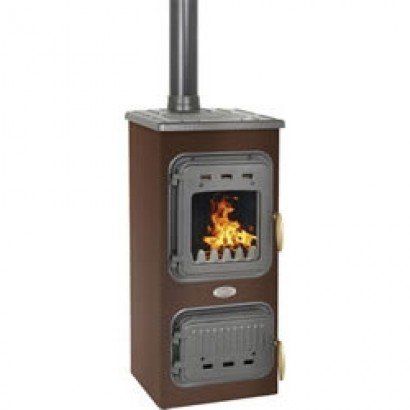 Отопительная печь со стеклянной дверцей, коричневая.