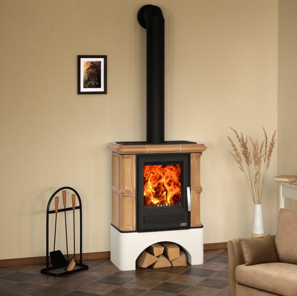 К печи Бавария можно подобрать несколько видов цоколя - металлокерамические (прямой, деревенский) и чугунный. Кафельная Печь, представленная на этой странице, укомплектована теплообменником, который можно подключить к радиаторам отопления. В качестве топлива производитель рекомендует топливную древесину или древесные брикеты. Расход топлива - 2.6 кГ в час. Топочная камера Bavaria футерована вермикулитом, который защищает ее стены и дно от теплового удара и помогает сжигать топливо. Высокая эффективность этого чешского камина обусловлена принципом двойного(тройного дожига), когда в верхнюю часть топки, через решетку фронтона печи и через прорези в задней части топки подается подогретый вторичный и третичный воздух. В результате несгоревшие частицы топлива, находящиеся во взвешенном состоянии в верхней части топки, сгорают практически без остатка.