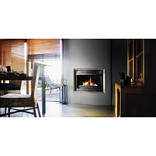 Каминная топка с прямым стеклом. Топочная камера футерована шамотом. Подъёмный механизм двери (система Easy-Lift). Ширина дверки 1660 мм. Высота дверки 538 мм. Возможно подключение воздуха извне.