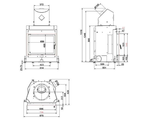 Топка КК 51/67 без подъема с одним плоским стеклом - 1 шт.