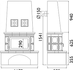 ![]() | Чертеж Brunner Kompakt-Kamine KK 57/55r side opening |