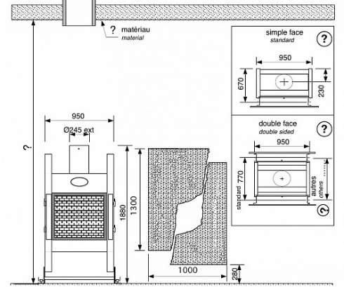 Фасады Métafocus также существуют со встроенной поддерживающей рамой и могут быть установлены с топками других производителей.