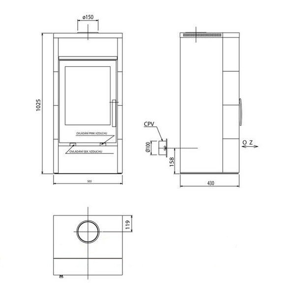 - Диаметр дымохода, (мм) 150