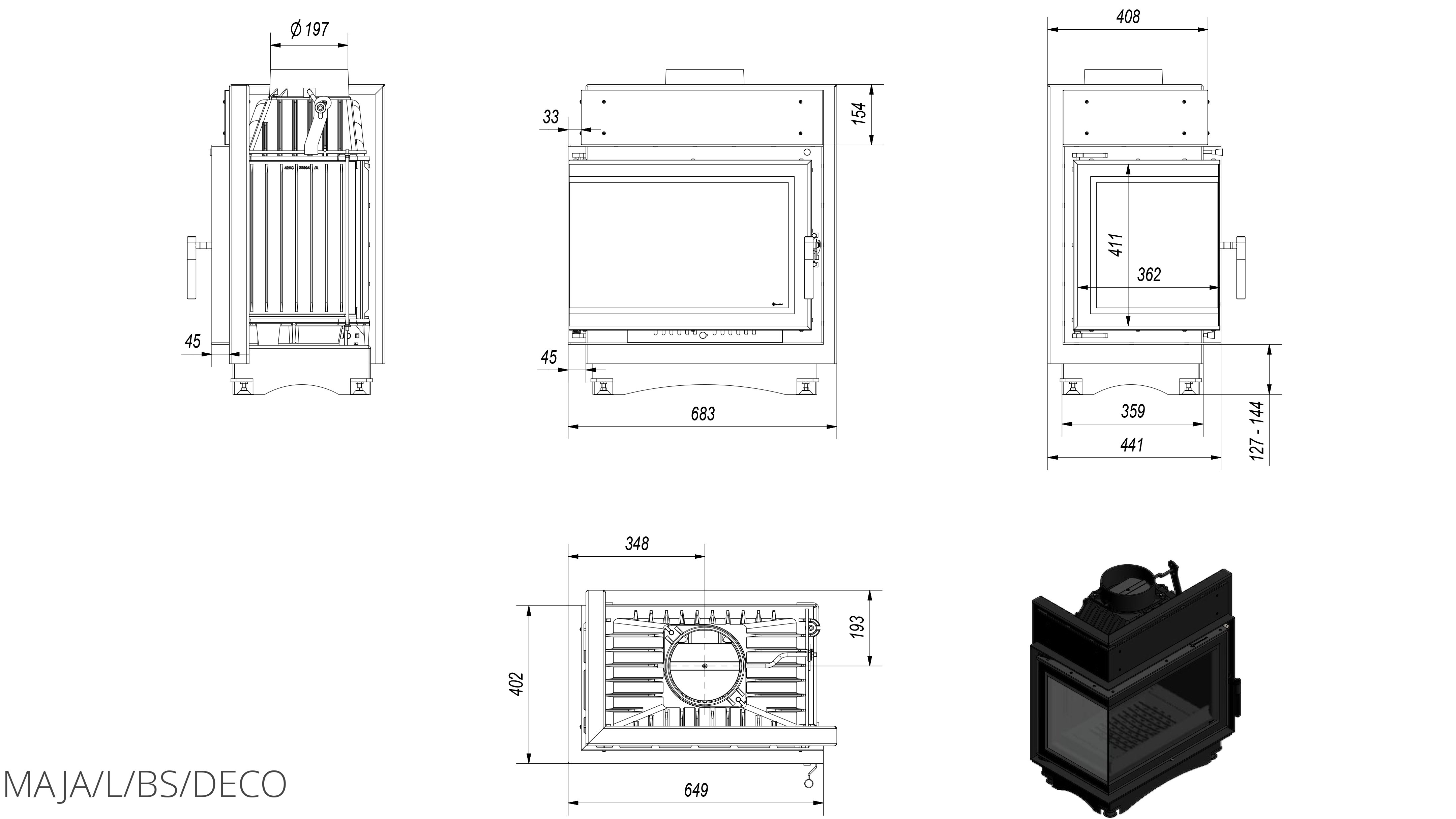 Чугунная каминная топка Kratki Maja/L/BS/Deco (Г-образное стекло слева) обладает рядом достоинств: компактные размеры, повышенный КПД и приличная площадь обогрева. Надежное отопительное оборудование высокого качества. Оснащена широким угловым  и фронтальным остеклением без перемычек с декоративной отделкой.