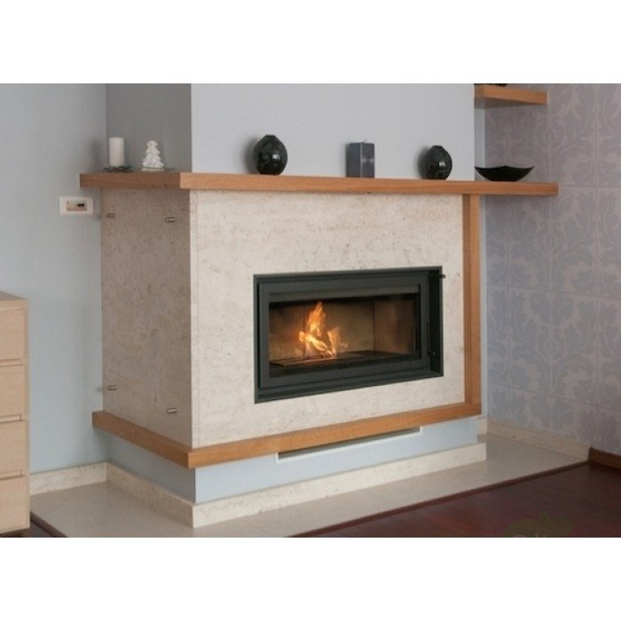 Каминная топка Kratki Mila/PW/24/W с водяным контуром — встраиваемая топочная камера, выполненная из котельной стали. Высокопроизводительная топка с футеровкой керамическим материалом и встроенным теплообменником. В отличие от большинства очагов имеющих прямоугольные дверцы, данная модель относиться к широкоформатным топкам горизонтального типа, и может работать на длинных поленьях (до 700 мм).