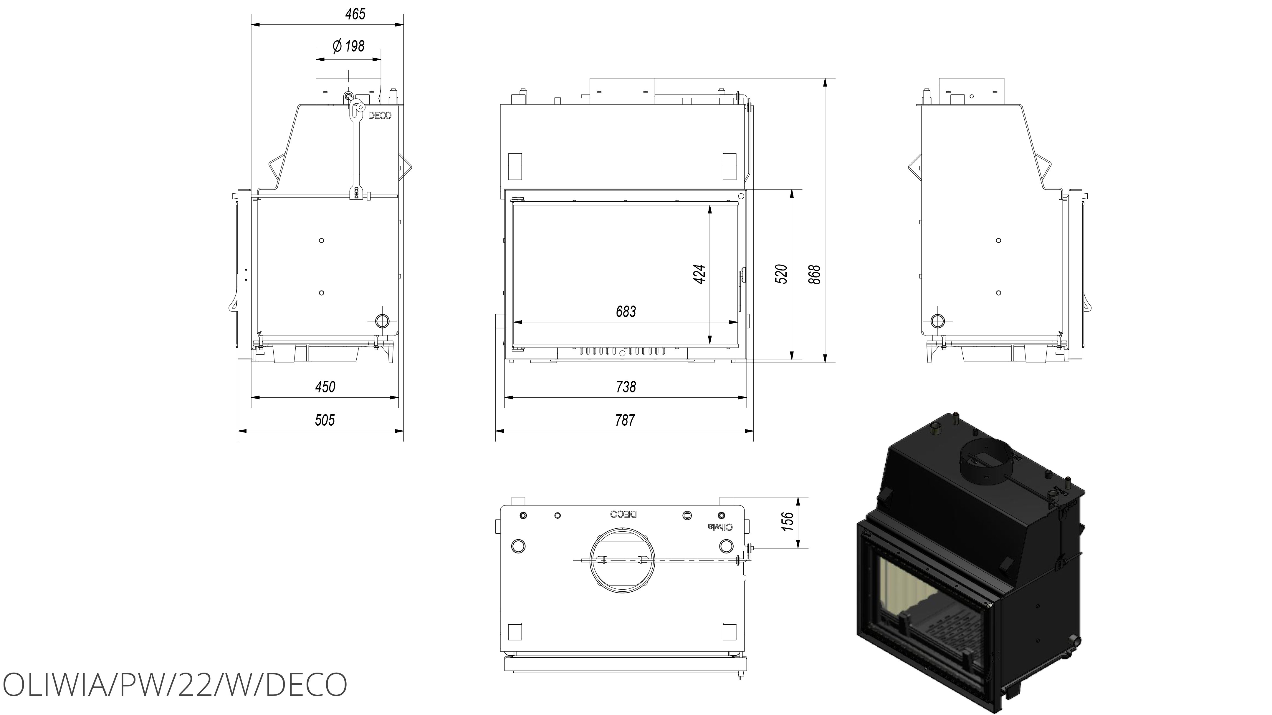 Каминная топка Kratki Oliwia/PW/22/W/Deco