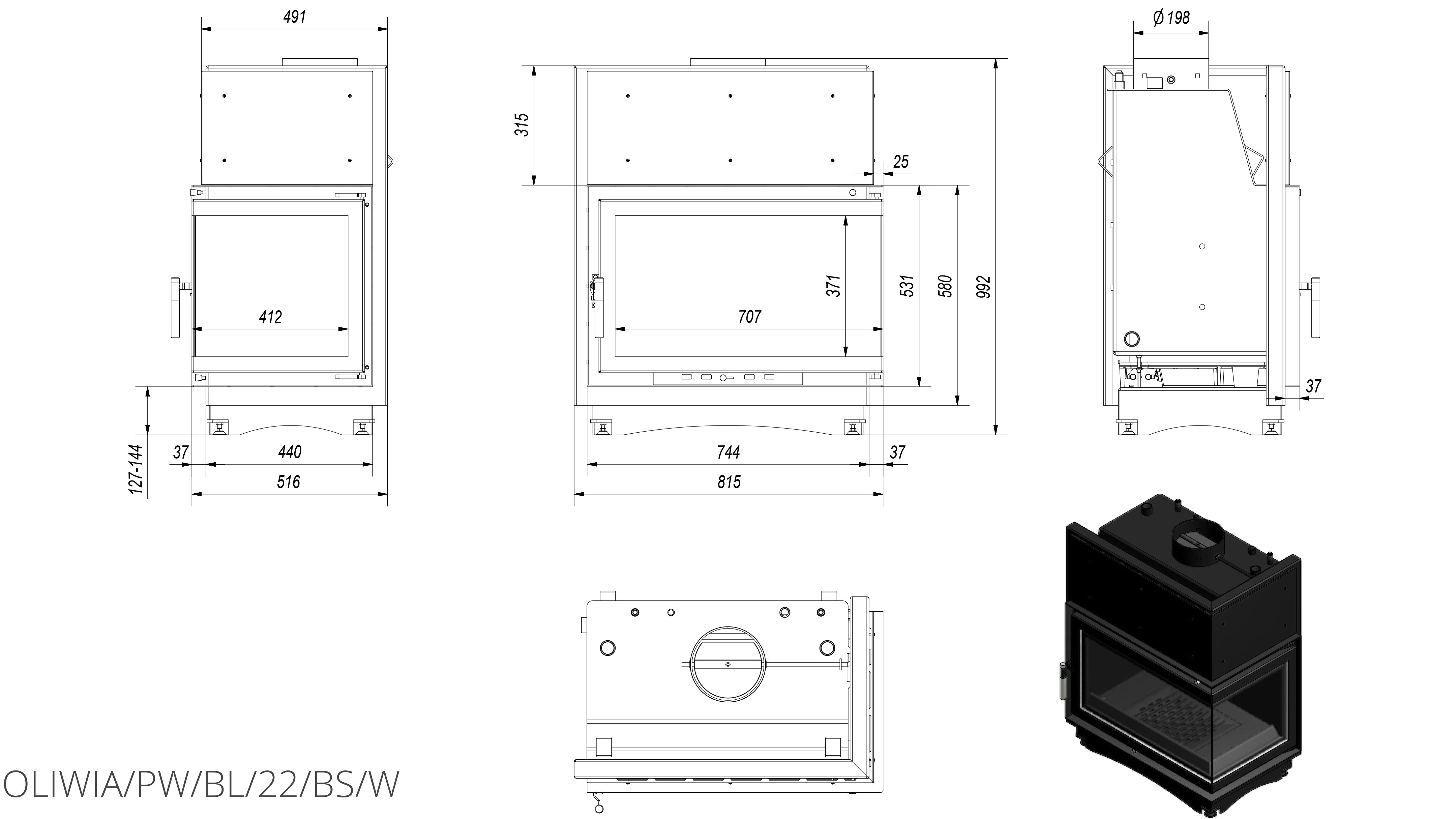 Каминная топка Kratki Oliwia/PW/BL/22/BS/W