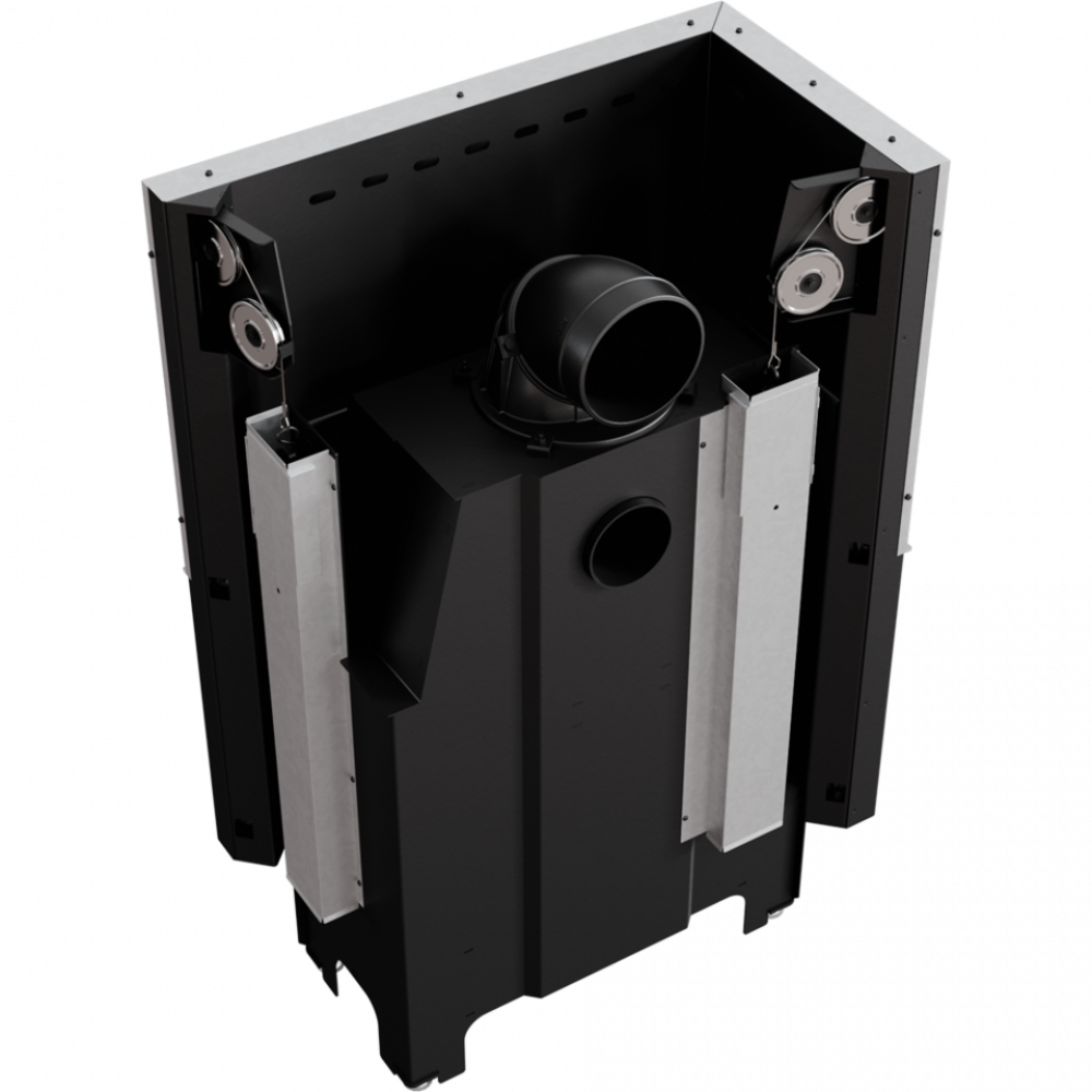 - Система внутреннего контроля дает возможность вести сервисные работы изнутри камеры сгорания без необходимости уничтожения застройки камина.