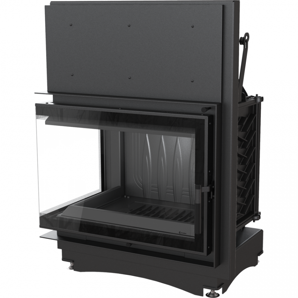 • Каминная топка с двумя стеклянными панелями, сопоставленными друг напротив друга под прямым углом (стеклянные панели соединены без рамы).