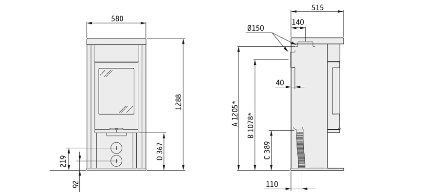 Камин Contura 620 Style оснащен теплонакопительным блоком. Панорамное стекло обеспечивает отличный обзор огня. В верхней части камина можно установить полочку для подогрева, либо использовать это пространство для дополнительного теплонакопительного блока. Нижний отсек может использоваться в качестве дровника. Бесшумное движение зольника. Изготавливается только в черном цвете.