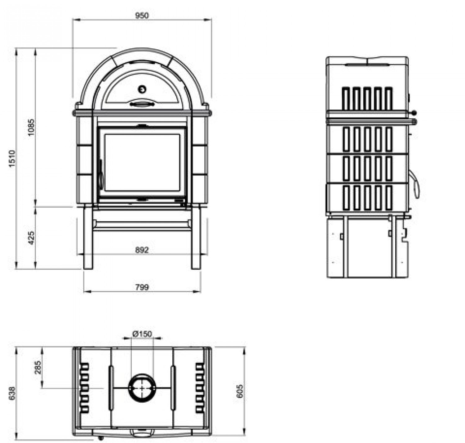 - Диаметр дымохода, (мм) 150 мм.