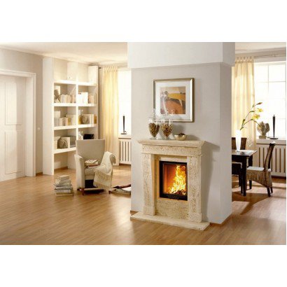 Портал из натурального камня (выбор камня из каталога). В комплект входят декоративные отделочные рамки, необходимые для оптимального монтажа топки.