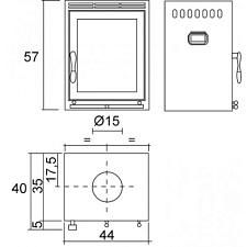 | Чугунный дымосборник Упрощённое соединение с дымоходом 0-90° | Колосниковая решетка Удобная ручка для поднятия решётки, не нужен специальный ключ | Регулятор подачи воздуха Нет необходимости в ключе для регулировки подачи воздуха - нет опасности поцарапать топку | Адаптер приточного воздуха Возможность внешней подачи воздуха на горение из подвала, из соседнего помещения или с улицы. Диаметр патрубка 125 мм. |