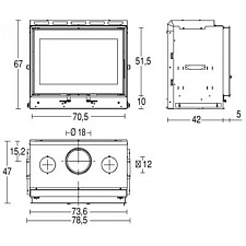 В топке имеется система длительного горения и система чистого стекла. Имеется возможность для подвода дополнительного воздуха из других помещений или улицы для процесса горения, что сводит к минимуму выжигание кислорода в помещении во время работы камина.