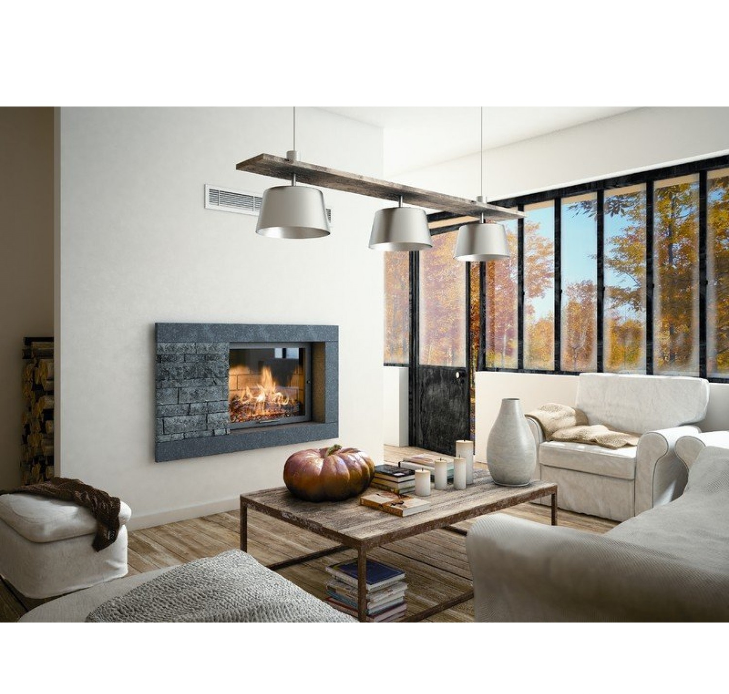 Топка оснащена системой очистки стекла, встроенным шибером и системой подводки внешнего воздуха в камеру сгорания, а также оборудована цепным механизмом подъема двери, съемной колосниковой решеткой и ножками, которые дадут возможность установить топку на неровной поверхности.