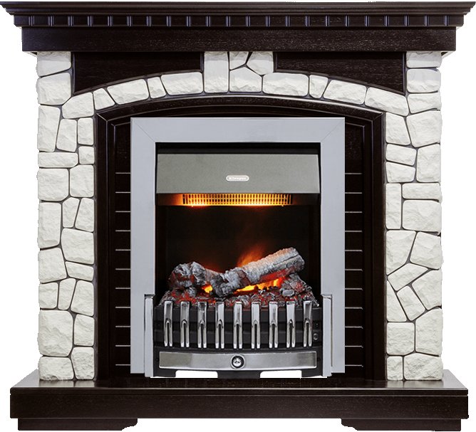 Каминокомплект Dimplex Glasgow прекрасно подойдет для интерьеров в стиле шале или кантри. Выполнен из материала, имитирующего натуральный камень. Деревянные элементы обрамления могут быть нескольких цветовых решений.