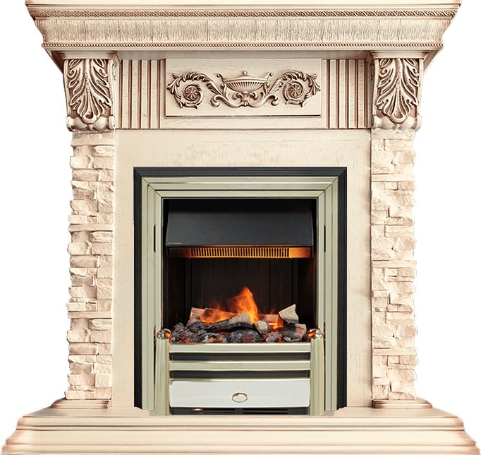 Электрокамин выполнен в золотом цвете. Золото – это материал, который никогда не выйдет из моды, это свидетельство безупречного вкуса и верности традициям. Цвет золота подчёркивает неповторимый стиль и необычность этого камина. К очагу можно подобрать любой портал, который подойдет к вашему интерьеру и станет его лаконичным продолжением. В очаге Dimplex Cavendish  применяется эффект «живого» пламени Opti-Myst, в основу которого  заложен инновационный принцип имитации огня – в очаге  мерцает  пламя, практически неотличимое от настоящего. В камине используется муляж дров ручной работы, которые невозможно отличить от настоящих поленьев, а благодаря подсветке создается полная  имитация жарко пылающего очага.