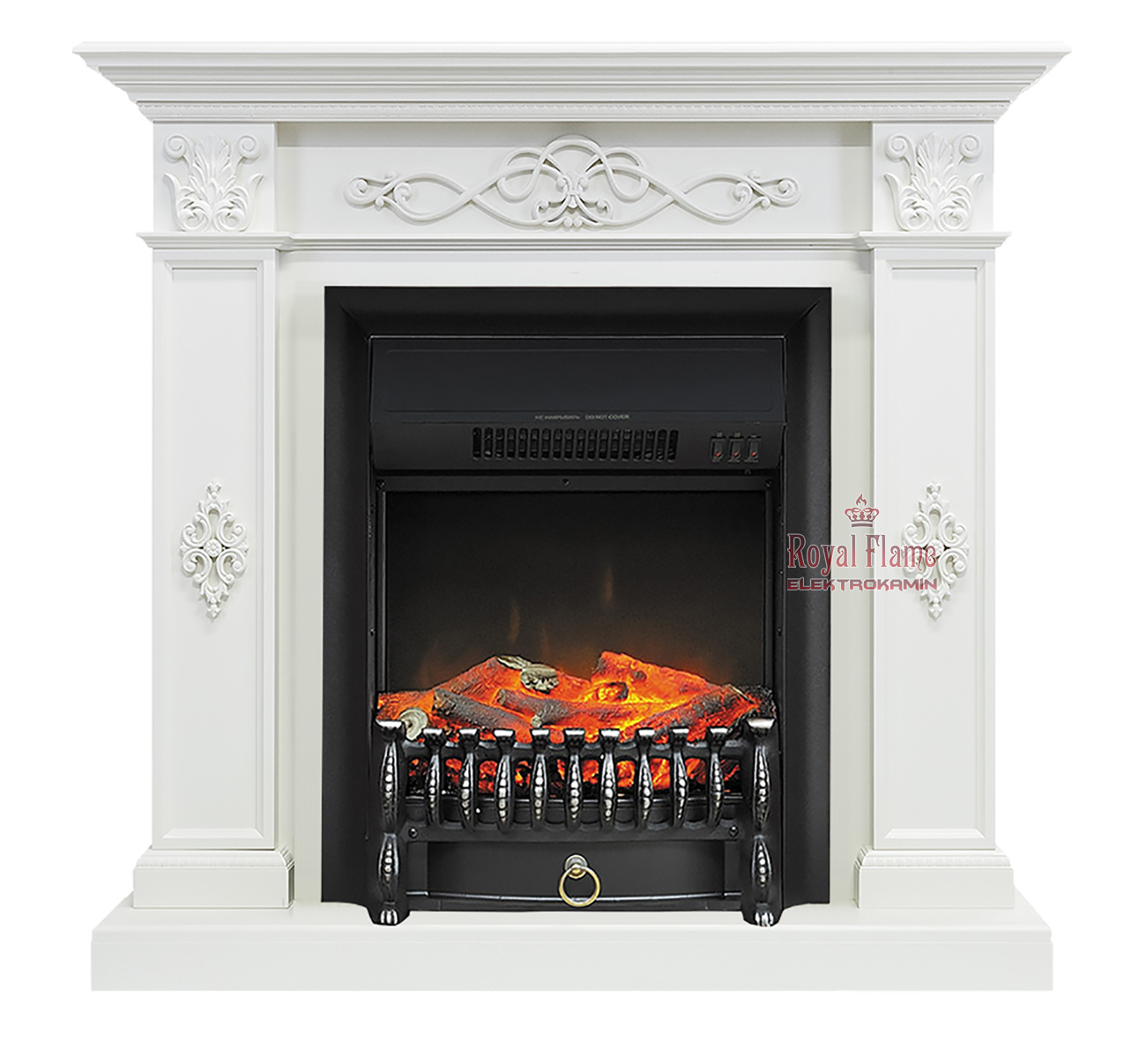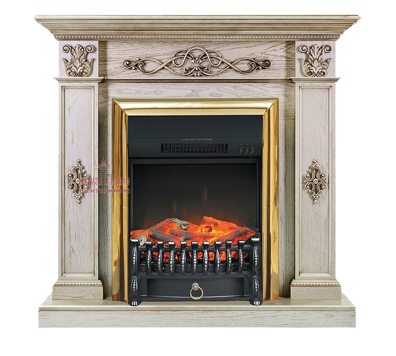 Электрический каминокомплект Royal Flame Derby очаг Fobos FX Brass. Derby – изысканный, стильный портал для помещений в классическом интерьере. Представлен в нескольких цветовых решениях. Боковые части портала выполнены в виде колонн, которые поддерживают ступенчатую крышку. По центру фронтона расположен изящный резной узор. Кронштейны украшены декоративной лепниной.