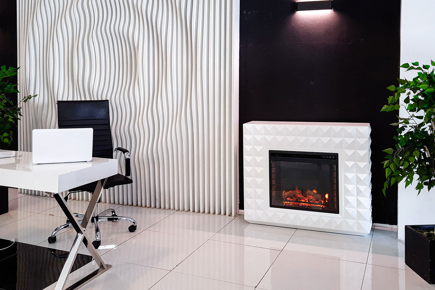 Diamond подходит под электрические очаги Royal Flame. Белый цвет портала выгодно акцентирует внимание на ярком пламени очага.