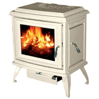 Печь с фронтальной и боковой дверцами, имеет систему Чистое стекло, ручка дверцы не нагревается в процессе топки. Печь покрыта эмалью, цвет - слоновая кость.