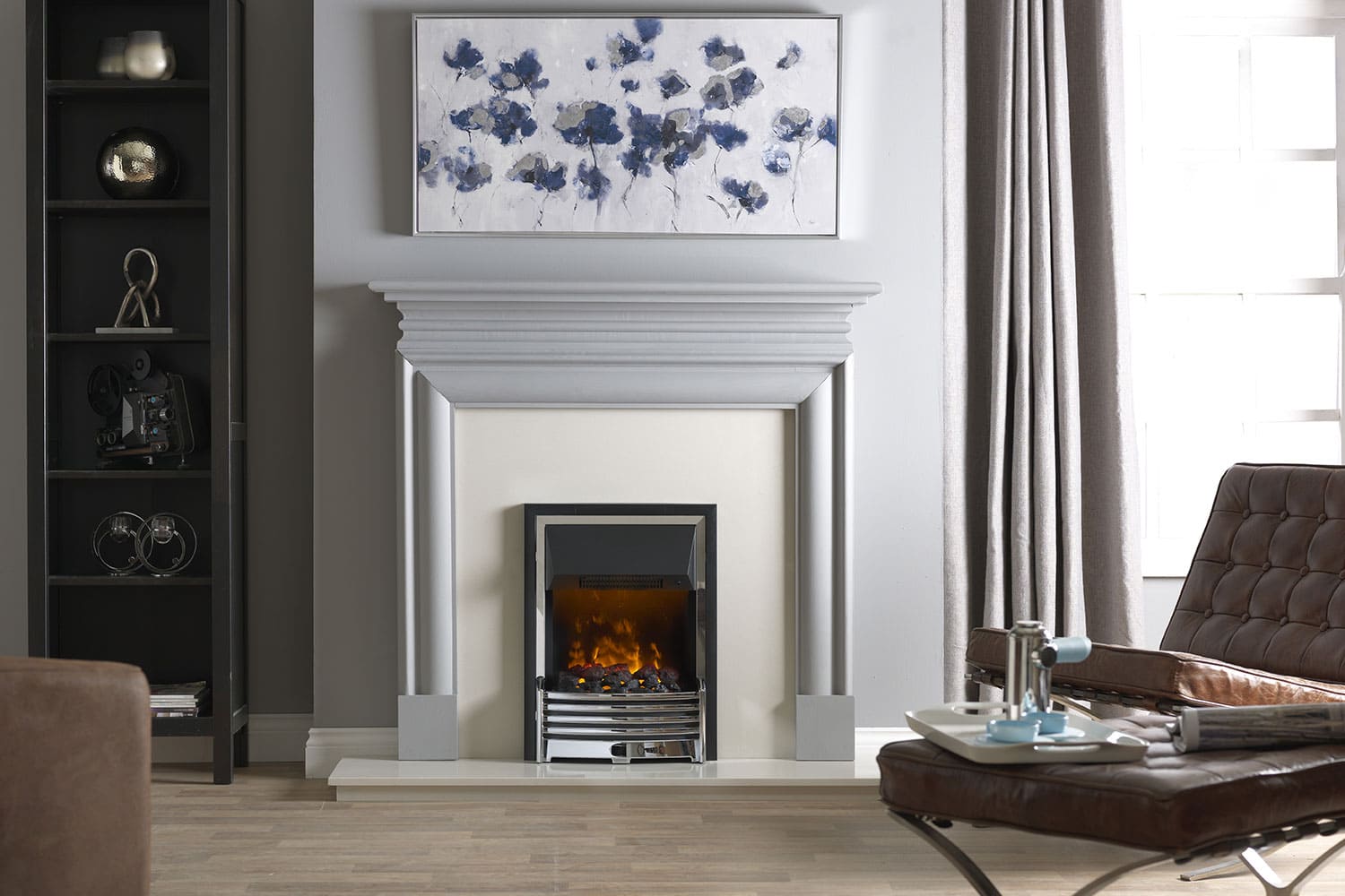 Электрический очаг Dimplex Flagstaff — стильный очаг в блестящем серебристом обрамлении.
