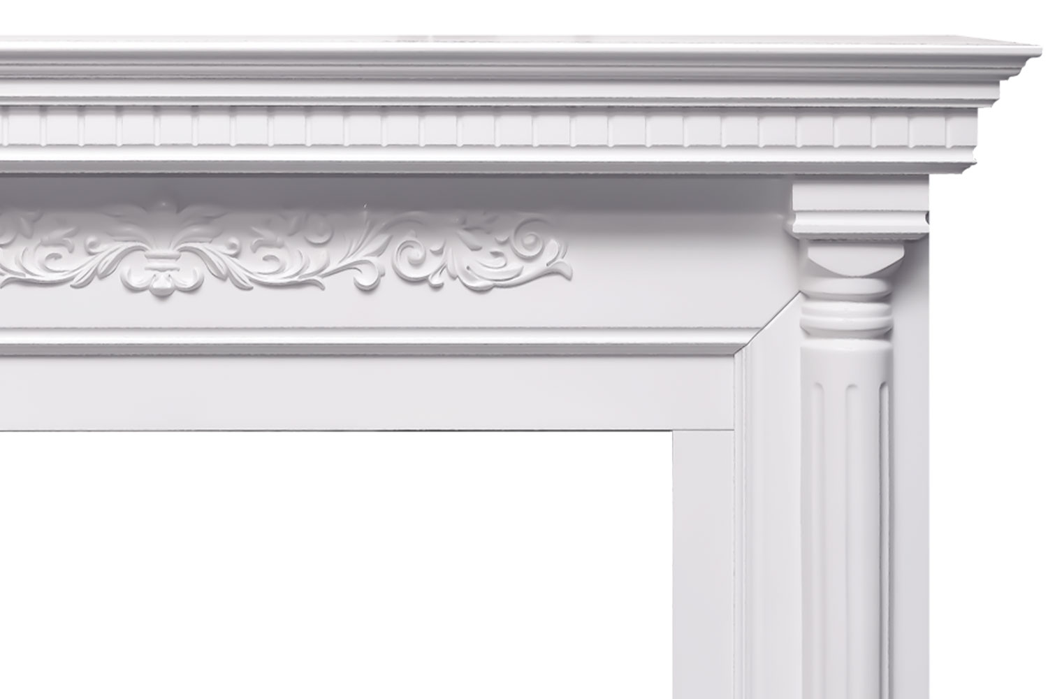 Портал совместим с электрическими топками Royal Flame, пламя в которых стилизовано под настоящее. Такой каминокомплект прекрасной подойдет для установки в интерьере спальни, гостиной или холла.