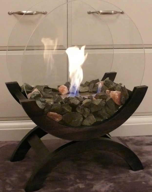 Firezo Diametro – это отдельностоящая напольная модель. Состоит из основания, изготовленного из дуба, корпуса топливного блока из стали и два защитных термостойких стекла.