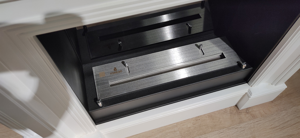 Биокамин был изготовлен под портал который самостоятельно сделал заказчик. Мы сделали чточно в его размеры и установили биокамин с линией огня 900 мм