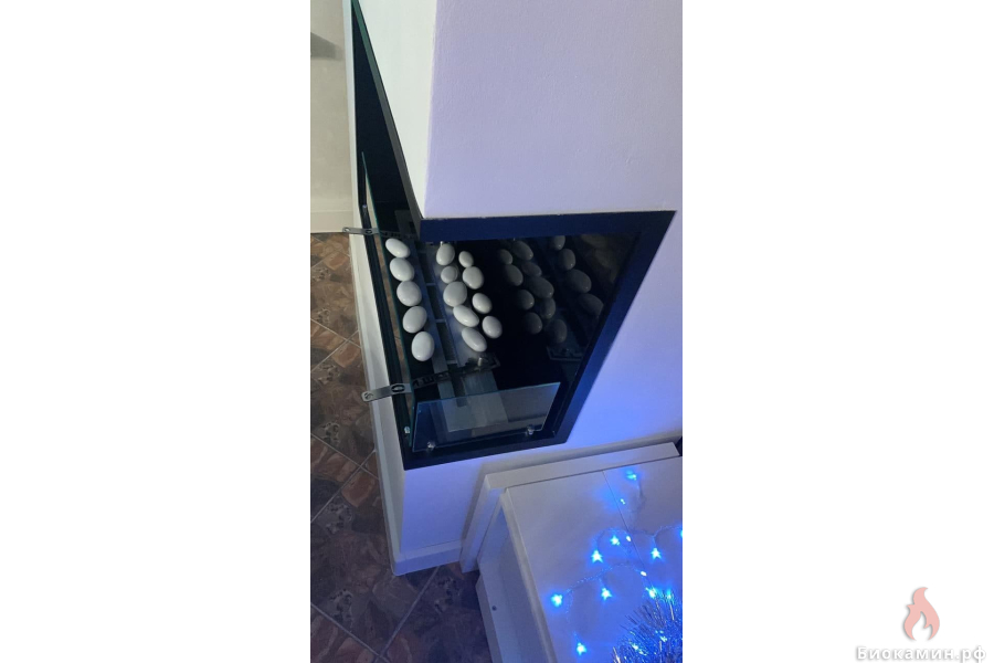 Данная модель может быть изготовлена по индивидуальным размерам. Встраивается в стены, проёмы, ниши, каминные порталы. Также дополнительно установили защитное стекло высотой 150мм.