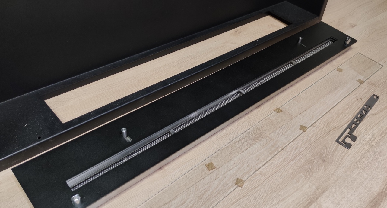 Горелка для биокамина представляет собой продолговатый короб небольшого размера с прорезями для выхода паров биотоплива. Она способствует равномерному распределению огня по всему периметру конструкции. В топливный бак для биокамина,емкостью от 350 мл до 3 л, заправляется топливо. В среднем 400 мл биоэтанола хватает на час работы устройства.